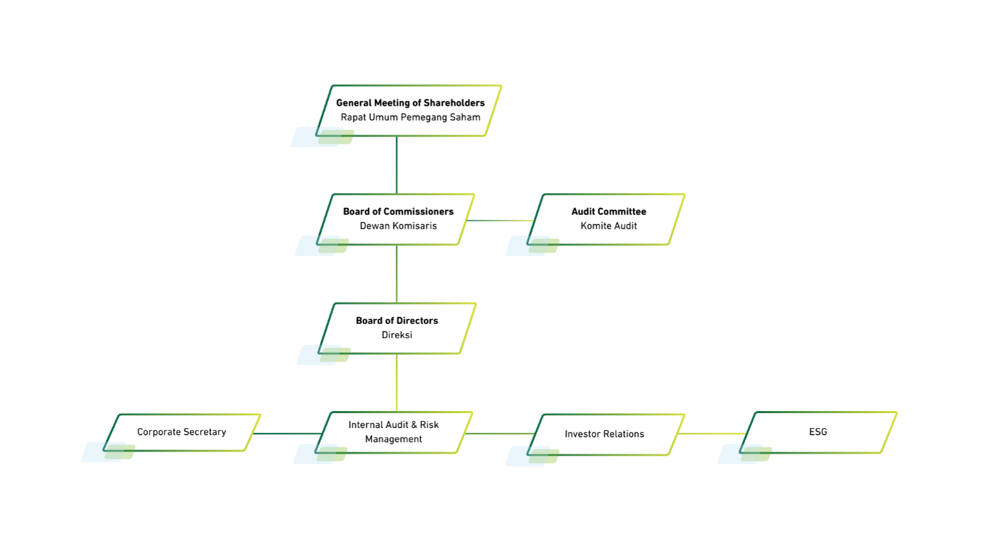 Sesuai dengan Undang-Undang Republik Indonesia Nomor 40 tahun 2007 tentang Perseroan Terbatas sebagimana diubah dengan Peraturan Pemerintah Pengganti Undang-Undang Republik Indonesia Nomor 2 Tahun 2022 tentang Cipta Kerja sebagaimana telah ditetapkan menjadi undang-undang berdasarkan Undang-Undang Nomor 6 Tahun 2023 tentang Penetapan Peraturan Pemerintah Pengganti UndangUndang Republik Indonesia Nomor 2 Tahun 2022 tentang Cipta Kerja Menjadi Undang-Undang ("UUPT"), organ Adaro terdiri atas Rapat Umum Pemegang Saham ("RUPS"), Direksi, dan Dewan Komisaris. Setiap organ memiliki peran penting dalam penerapan tata kelola serta memiliki fungsi, tugas, dan tanggung jawab masing-masing demi kepentingan Adaro dalam menjalankan kegiatan usaha selaras dengan Anggaran Dasar dan peraturan perundang-undangan yang berlaku.